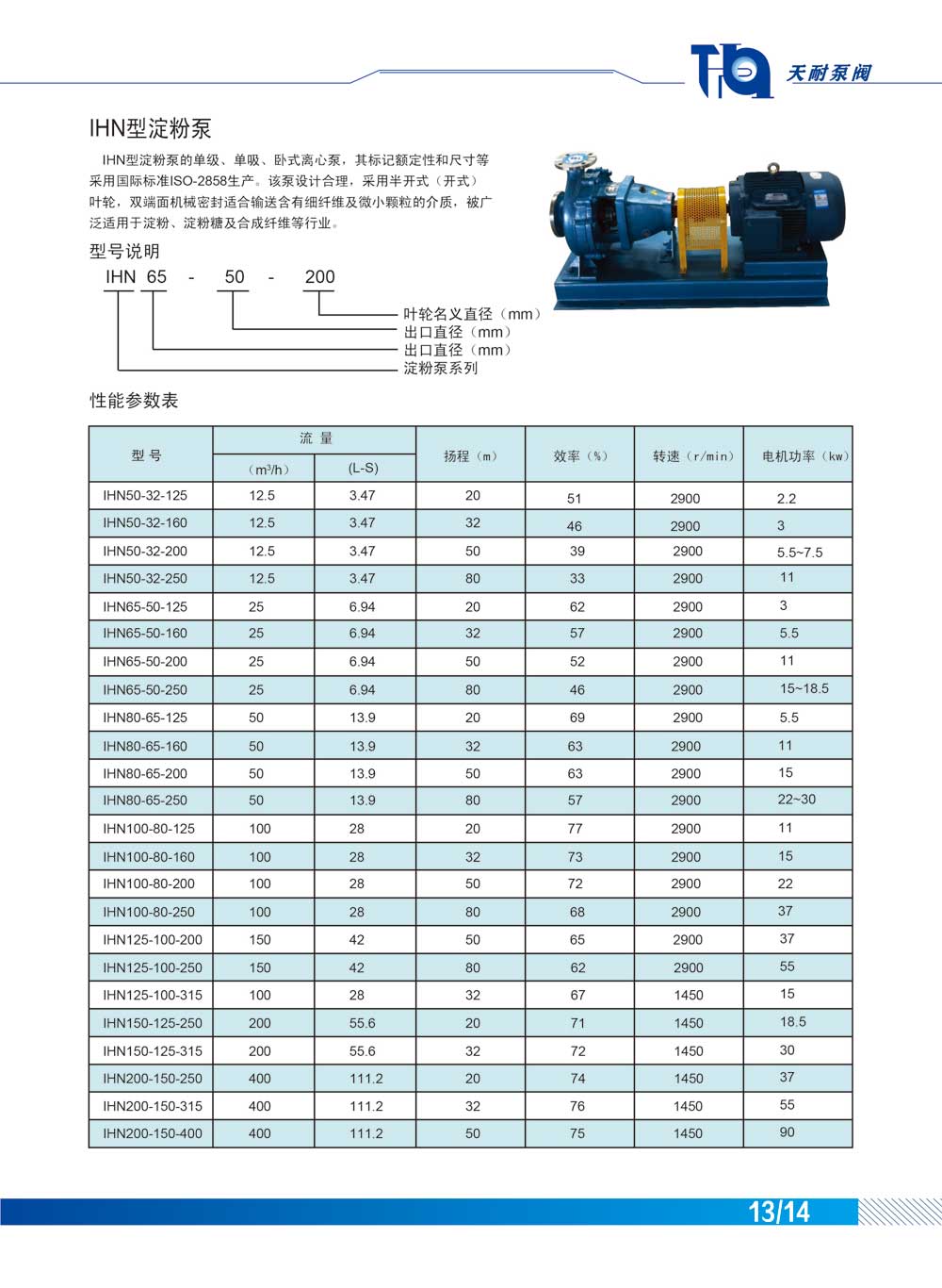 IHN型淀粉泵—天耐泵閥